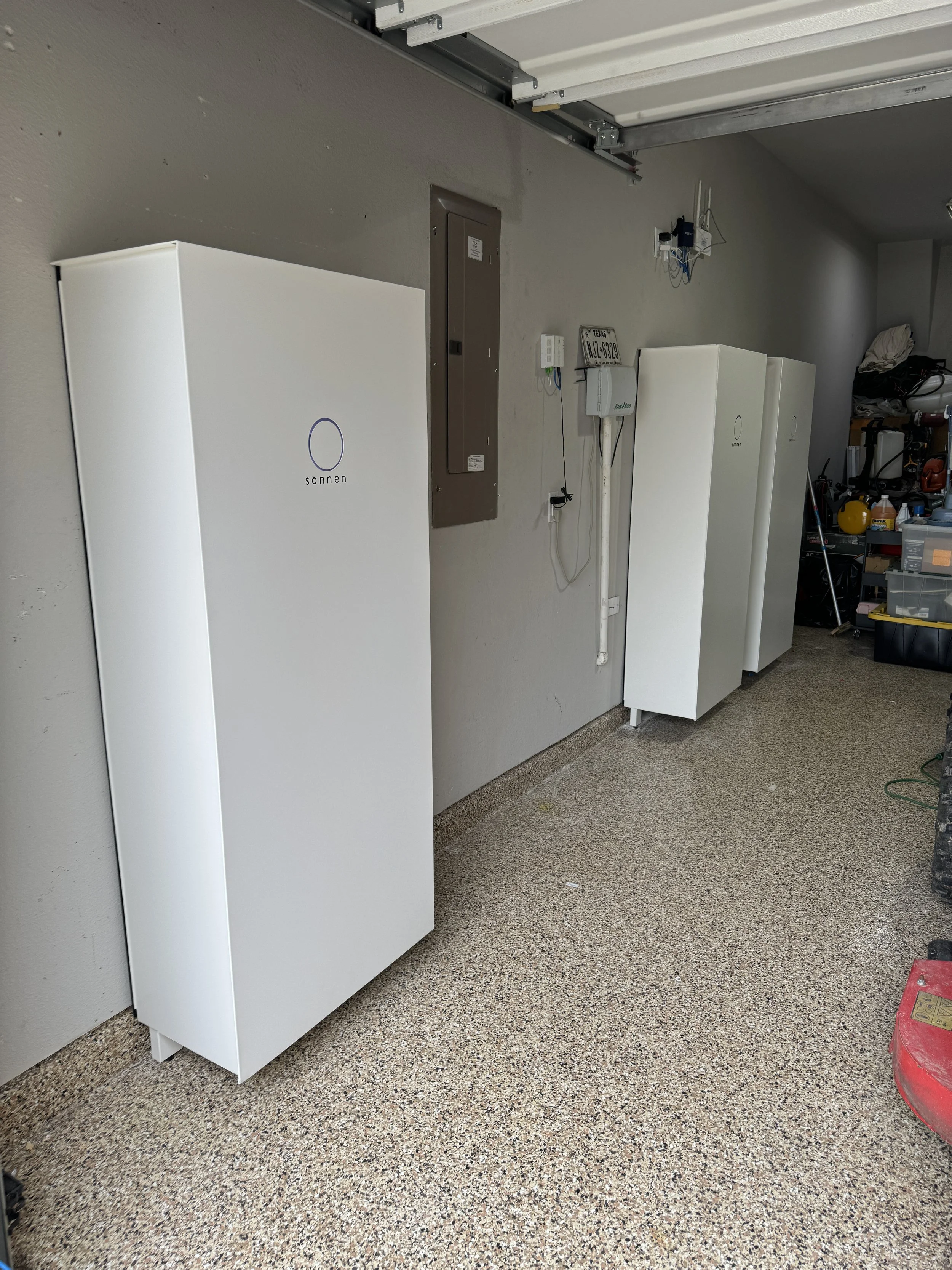 Must have room in a garage for batteries. Most homes will have 3 batteries which take up about 9 feet of wall space.